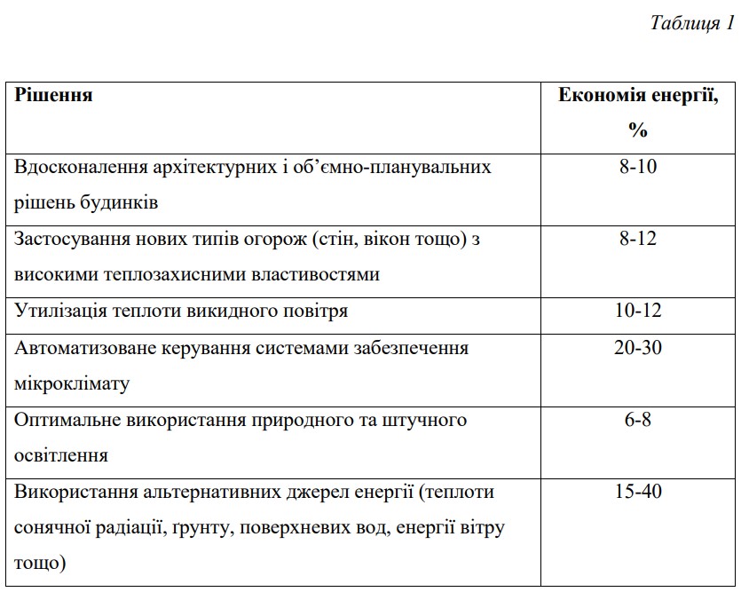 У таблиці 1 ви знайдете перелік поширених рішень з економії енергії, яка витрачається на постачання тепла у будинки. А також, очікувана річна економія енергії у випадку їх реалізації.